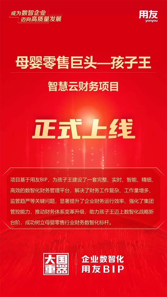 近日,母嬰童零售行業(yè)巨頭孩子王兒童用品股份有限公司(簡稱“孩子王”)智慧云財務項目成功上線!得益于數(shù)字化轉型的后發(fā)優(yōu)勢,孩子王已經搭建了5大前臺系統(tǒng)、3大中臺系統(tǒng)、7大后臺系統(tǒng),涵蓋約7000多個子系統(tǒng)模塊,將1300多個數(shù)字化生產工具投入到門店經營中,構建出多樣化的商品服務、高效智能化的終端運營、品牌化的經營策略,形成了堅不可摧的企業(yè)護城河。孩子王財務以“業(yè)財融合”為使命,實時賦能業(yè)務,縱深發(fā)展財務數(shù)智化。