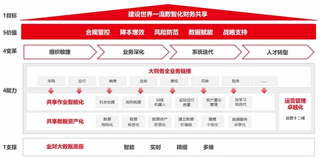 1個目標(biāo):建設(shè)世界一流數(shù)智化財務(wù)共享體系,支撐財務(wù)數(shù)智化轉(zhuǎn)型升級。