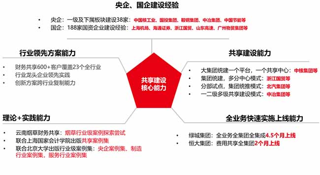 從2007年投入中國企業(yè)財務(wù)共享服務(wù)市場,至今用友已經(jīng)幫助超過600+家不同行業(yè)、不同業(yè)態(tài)、不同規(guī)模的企業(yè)成功構(gòu)建財務(wù)共享服務(wù)中心。其中超38+中央企業(yè)及其下屬企業(yè)選擇用友成為其財務(wù)共享服務(wù)項目的建設(shè)服務(wù)伙伴。