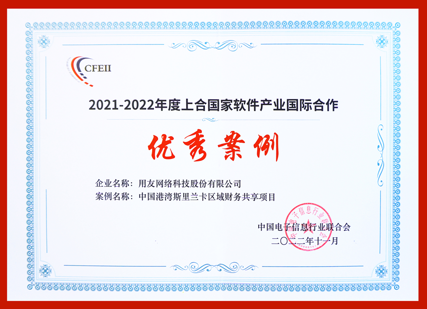 用友軟件承接的中國(guó)港灣斯里蘭卡區(qū)域財(cái)務(wù)共享項(xiàng)目,獲評(píng)“2021-2022年度上合國(guó)家軟件產(chǎn)業(yè)國(guó)際合作優(yōu)秀案例“。